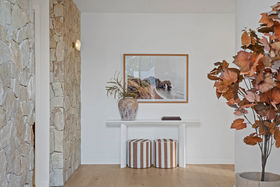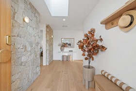 You will be greeted by the stunning Oslo stone feature wall and guided by a curved hallway through to the expansive living space, where natural light, texture, and warmth work in harmony. The fireplace in the main living area creates a calm and inviting atmosphere, while the strategically placed lighting, both internal and external, accentuates every line and detail.